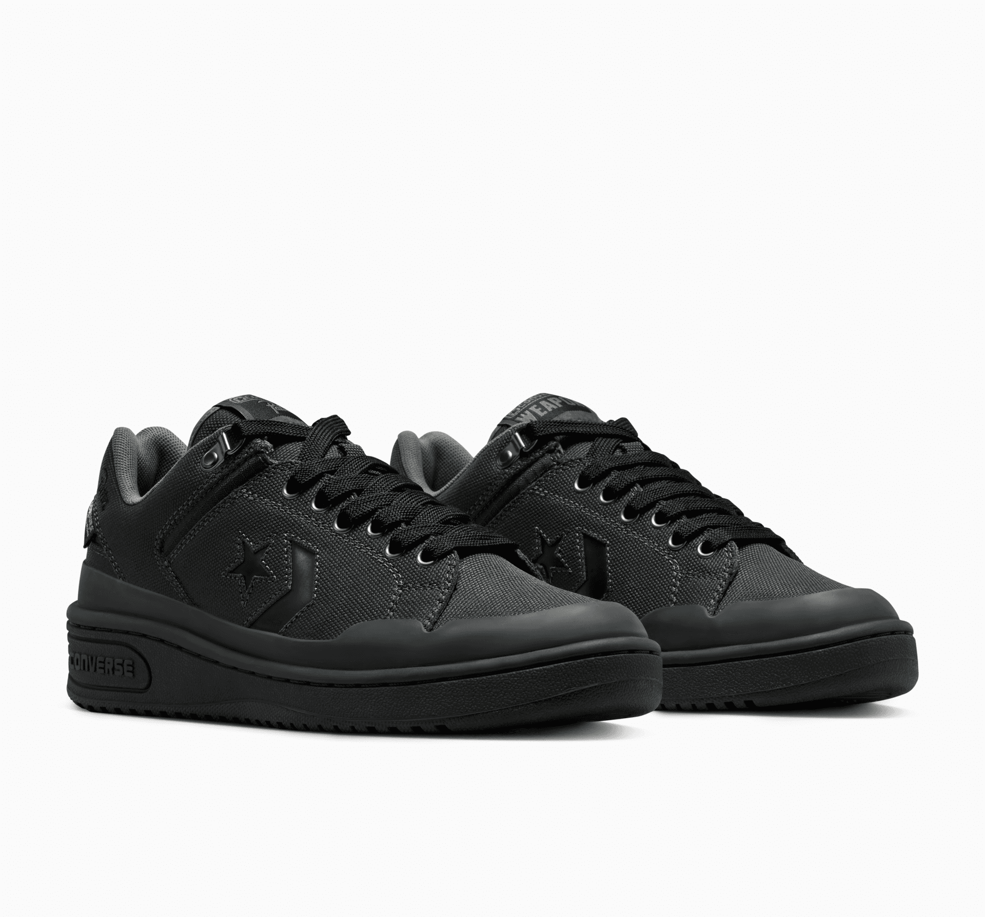 For those who create next—rain or shine. Converse teams up with celebrated collaborators Patta on a utilitarian Converse Weapon. Durable fabric, reflective elements, a distinct mudguard and classic details come together to transform the ‘80s court legend into a unique expression of modern utility.