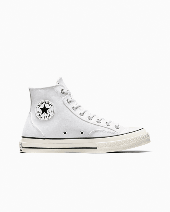 Športové prémiové tenisky Chuck 70 sme vylepšili, ale stále majú svoj štýl. Klasické materiály, ako je perforovaná koža, prispievajú k mimoriadnemu pohodliu. Vďaka nadčasovým dizajnovým prvkom zostávajú tenisky v hre a ľahko sa nosia po celú sezónu.