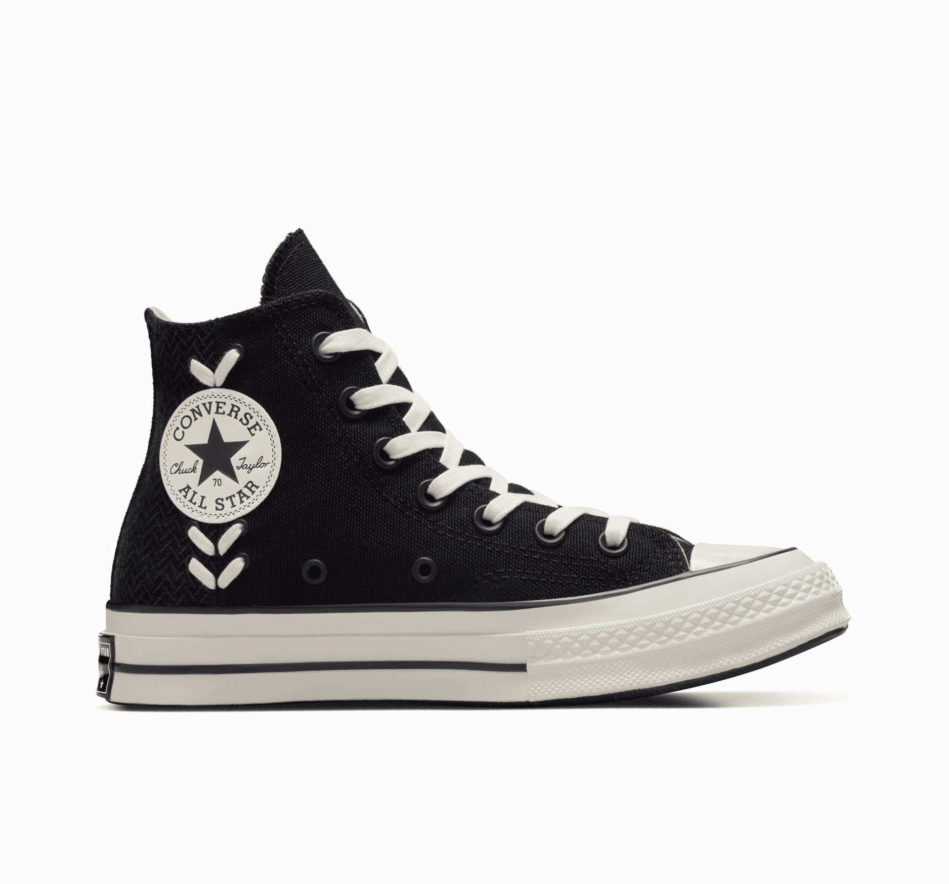 Prémiové tenisky Chuck 70 sú teraz luxusné, pretože dostali vylepšenie v podobe elegancie a premyslených detailov. Textúra v jemných farebných odtieňoch a zdobené šnúrky hravo doladia každý outfit.