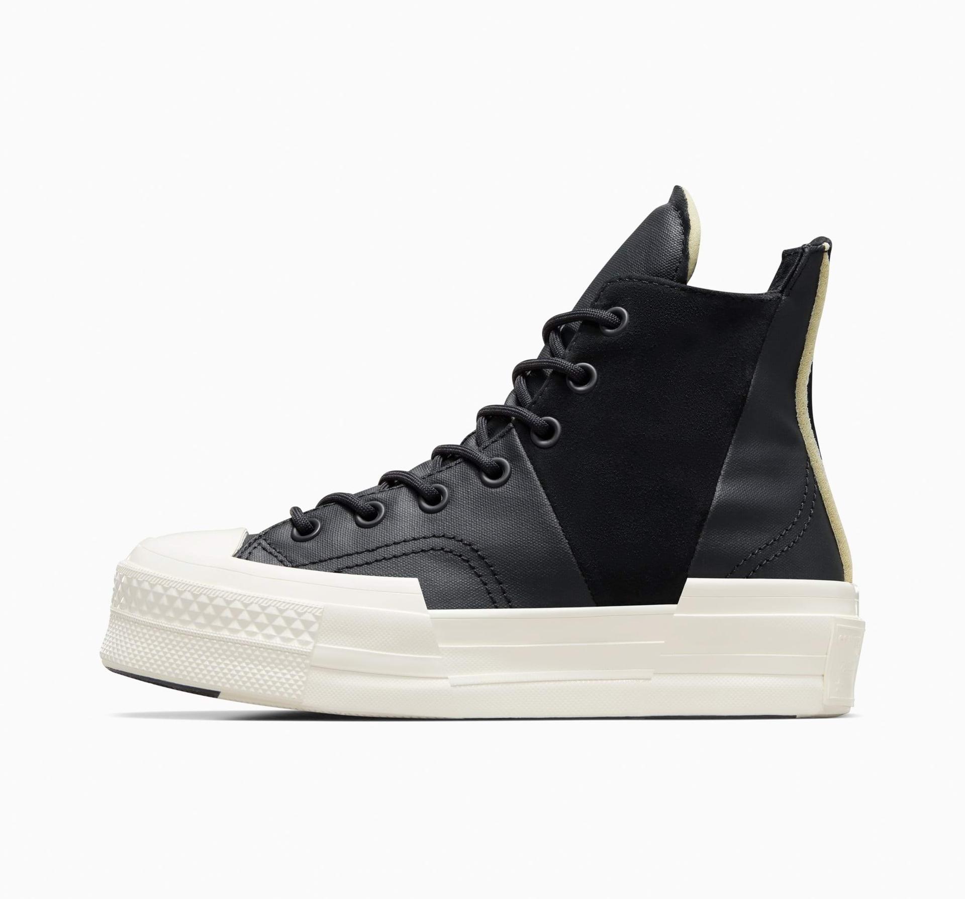 Neočakávaná adaptácia nehynúcej klasiky v teniskách Chuck 70 Plus kombinuje ikonické prvky s dizajnom, ktorý sa stretáva s budúcnosťou. Kombinácia plátenej látky a semišu v kombinácii s výraznými asymetrickými prúžkami vytvára pôsobivý kúsok. Verzia by nebola úplná bez prijateľnej penovej výplne v oblasti jazyka a päty. S týmito teniskami bude každý outfit vyzerať prakticky.