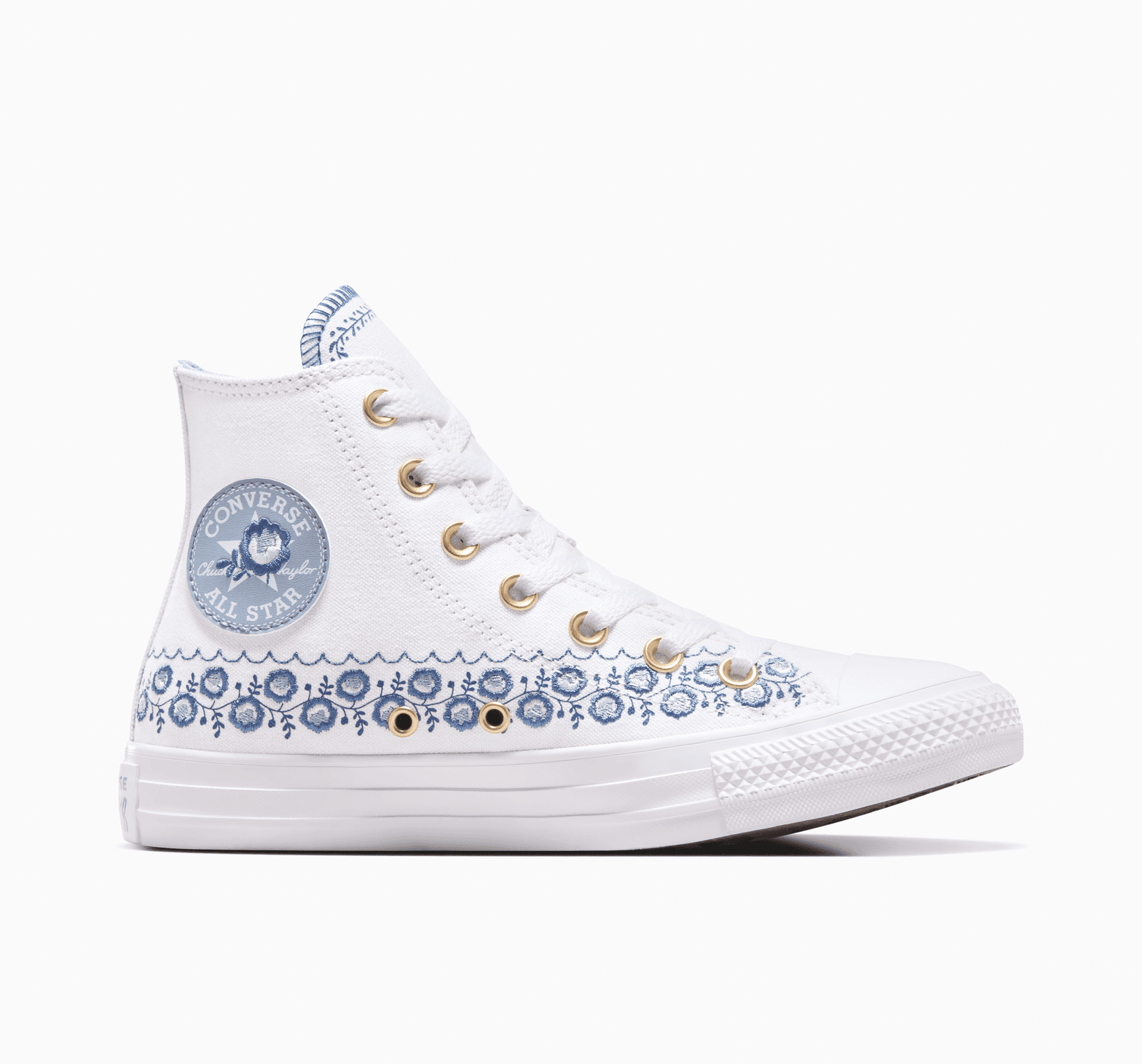 Ručne vyšité kvetiny, svetlé pastelové farby a zlaté metalické detaily si podmanili klasické tenisky Chuck. Keď chcete dodať všetkým svojim slobodomyseľným kreáciám trochu boho štýlu, sú tieto tenisky tie pravé.