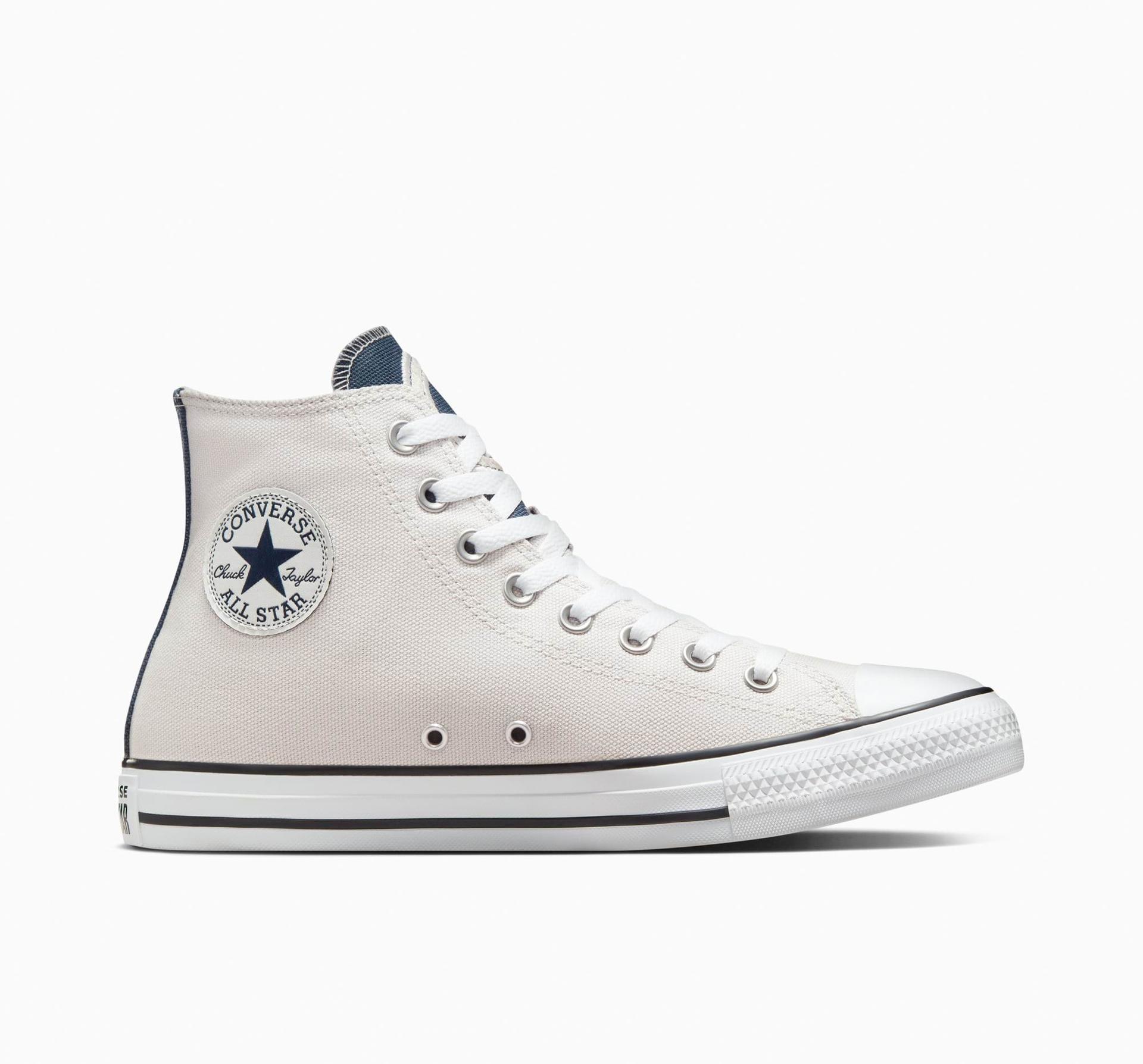 - Trojrozmerná nášivka písmena C a saténovo vyšívaný text Chuck Taylor na jazyku