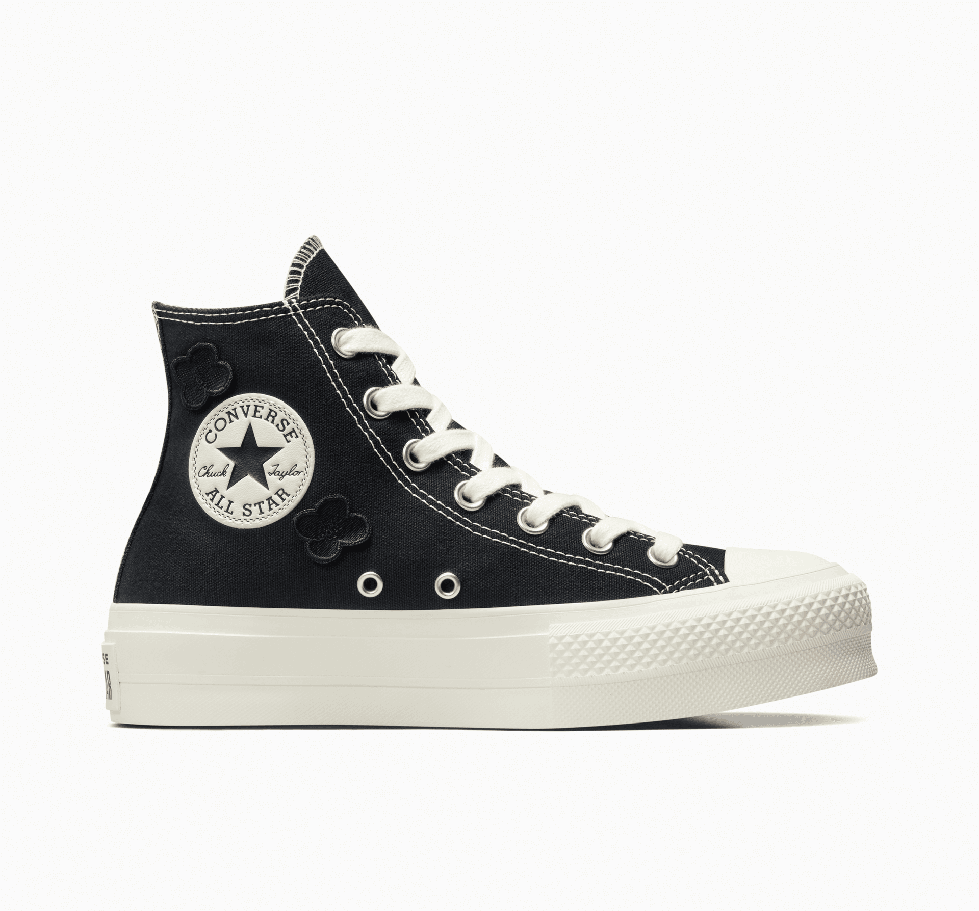 Kultové tenisky All Star Lift zostávajú samy sebou, aj keď majú mimoriadne pohodlnú tlmiacu vrstvu a výraznú podrážku na platforme. S novou verziou tenisiek v jemnom vyhotovení s vyšívanými trojrozmernými kvetmi dáte dohromady dokonalý outfit.