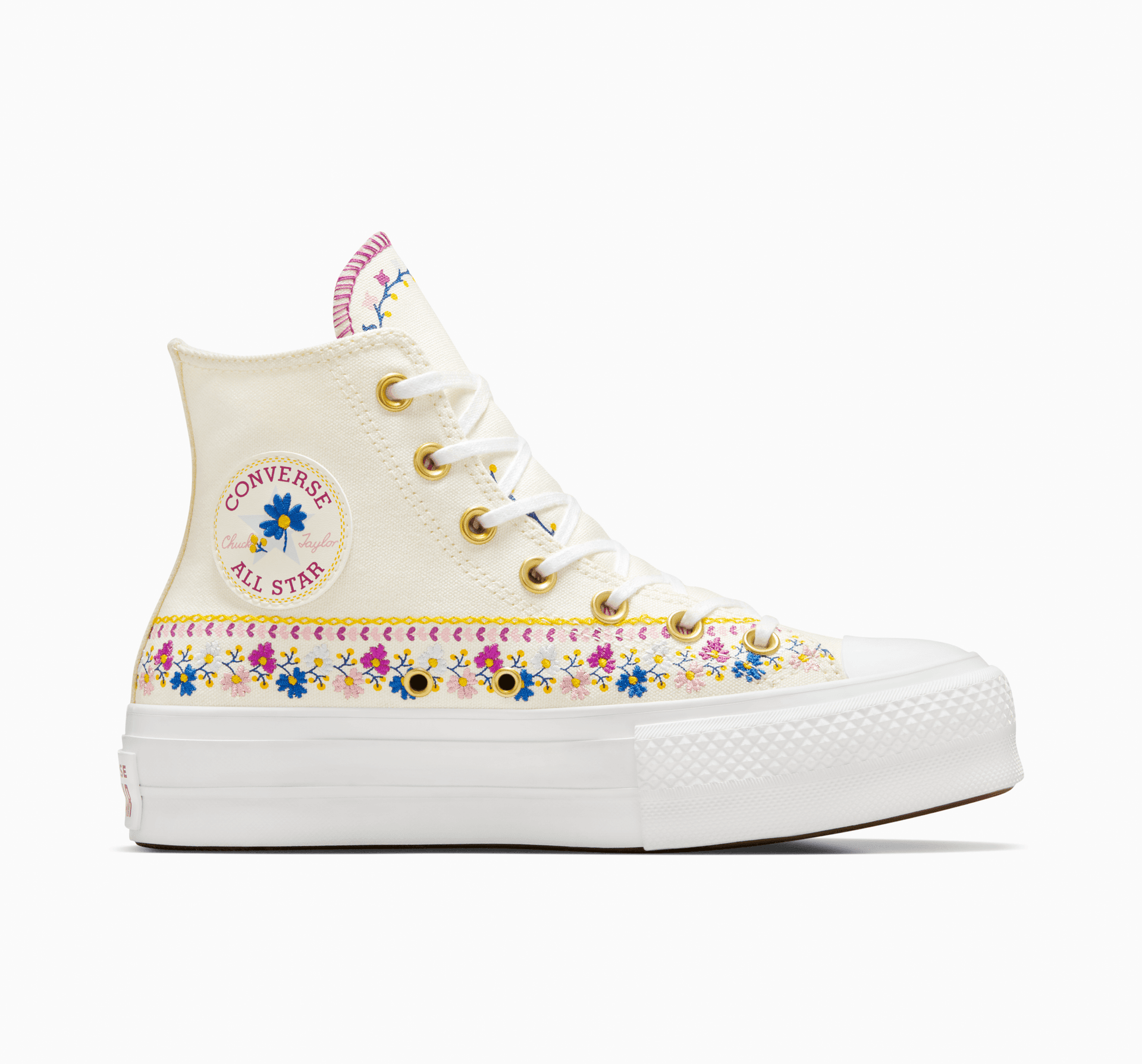 Ručne vyšité kvetiny, svetlé farby a zlaté metalické detaily si podmanili platformy Chuck. Keď chcete dodať všetkým svojim slobodomyseľným kreáciám trochu boho štýlu, sú tieto tenisky tie pravé.