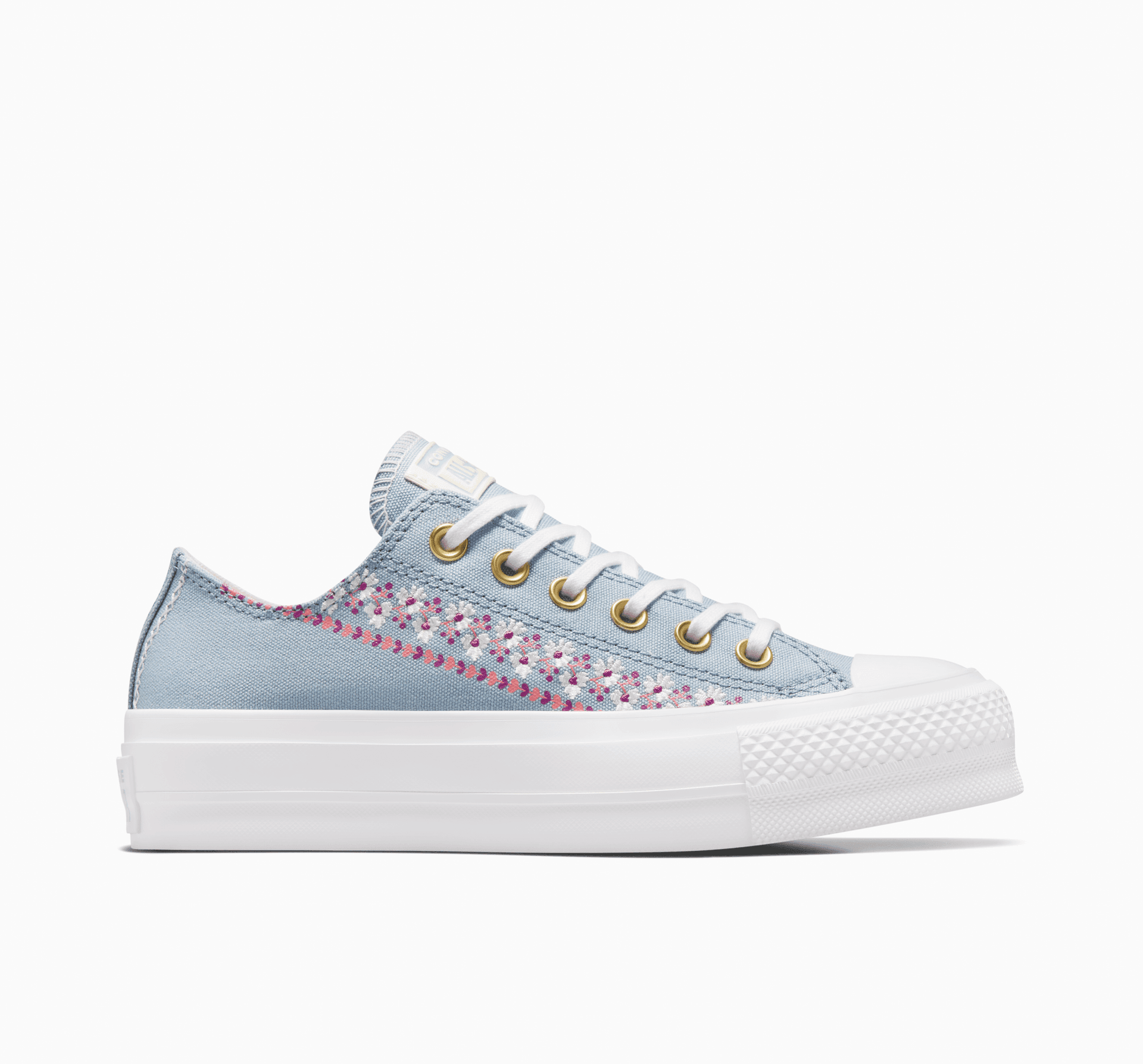 Ručne vyšité kvetiny, zemité odtiene a zlaté metalické detaily si podmanili platformy Chuck. Keď chcete dodať všetkým svojim slobodomyseľným kreáciám trochu boho štýlu, sú tieto tenisky tie pravé.