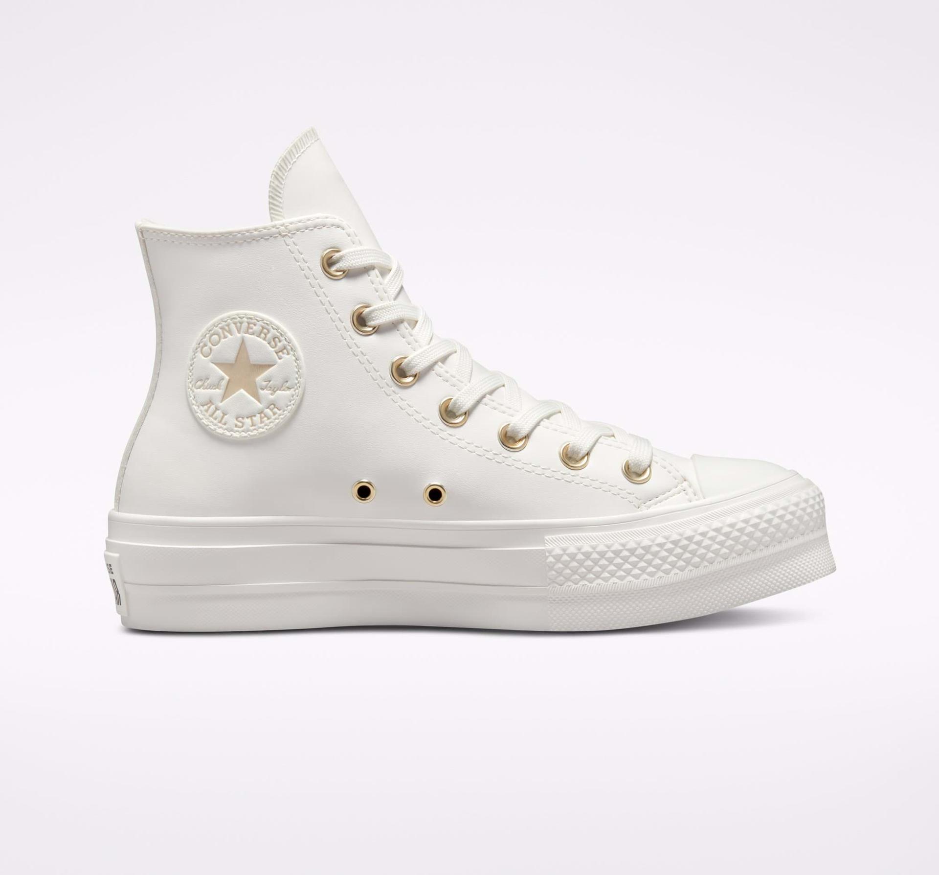 Platformové topánky Chuck vstupujú do sezóny s luxusnými detailmi, vďaka ktorým váš štýl nezostane bez povšimnutia. Keďže platformové topánky majú elegantný koženkový zvršok a čisto bielu medzipodrážku, hodia sa ku všetkému. Nenápadné zlaté detaily dodávajú outfitu šmrnc.