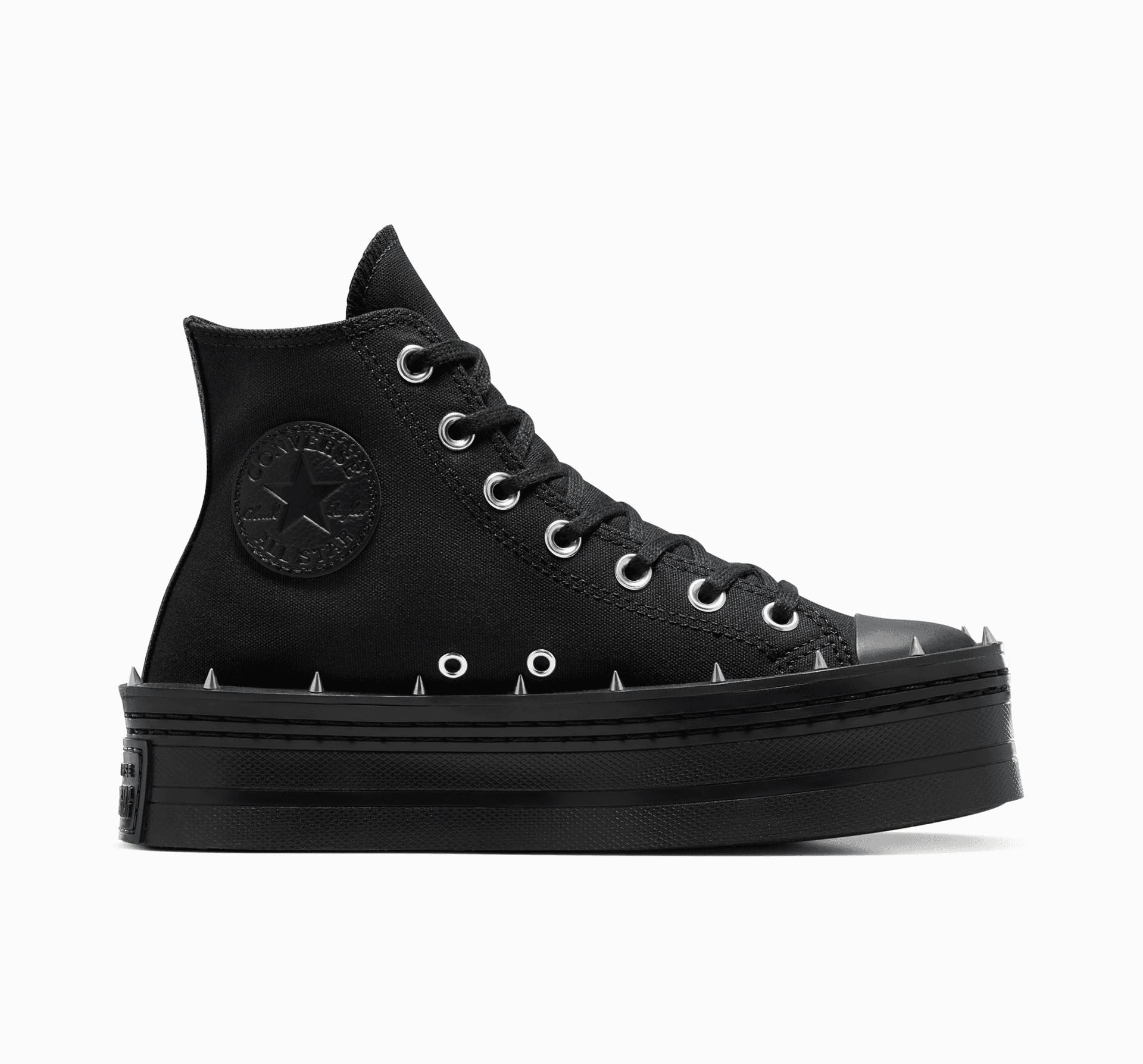 Ukážte svoju známku punku v ikonickom štýle tenisiek Chuck Taylor. Legenda vo výšinách vo výraznej aktualizovanej verzii s cvokmi s hrotmi po celej ploche, ktoré zapôsobia.