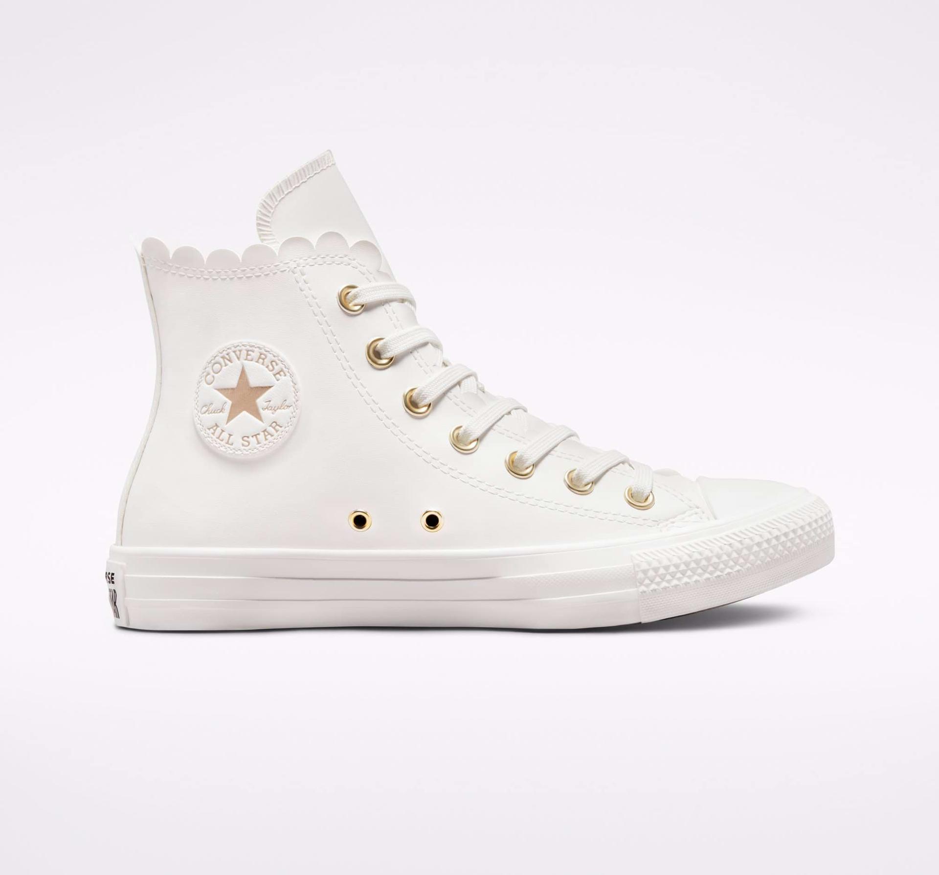 Ikonické tenisky Chuck vstupujú do sezóny s luxusnými detailmi, ktoré neprispôsobia vášmu štýlu. Keďže platformové topánky majú elegantný koženkový zvršok a čisto bielu medzipodrážku, hodia sa ku všetkému. Nenápadné zlaté detaily a jemné vrúbkovanie dodávajú outfitu šmrnc.