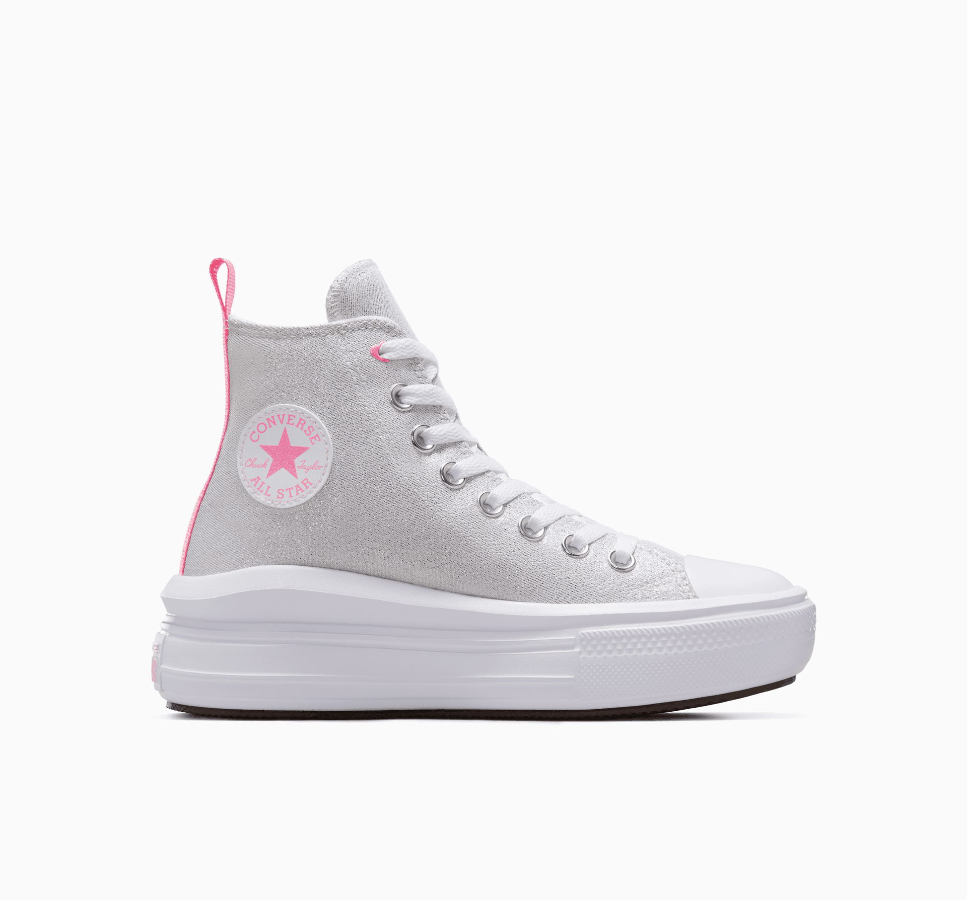 Rovnako ako vaše malé ja, tieto tenisky Chuck zažiaria. V týchto ľahkých platformách s hravými detailmi ružovej a trblietkami zapôsobíte. Kúzlo v nich prebudia očká v tvare srdca. Vďaka nasadzovaciemu popruhu na zadnom diely ich každé dieťa rado obuje a bude sa v nich ukazovať.