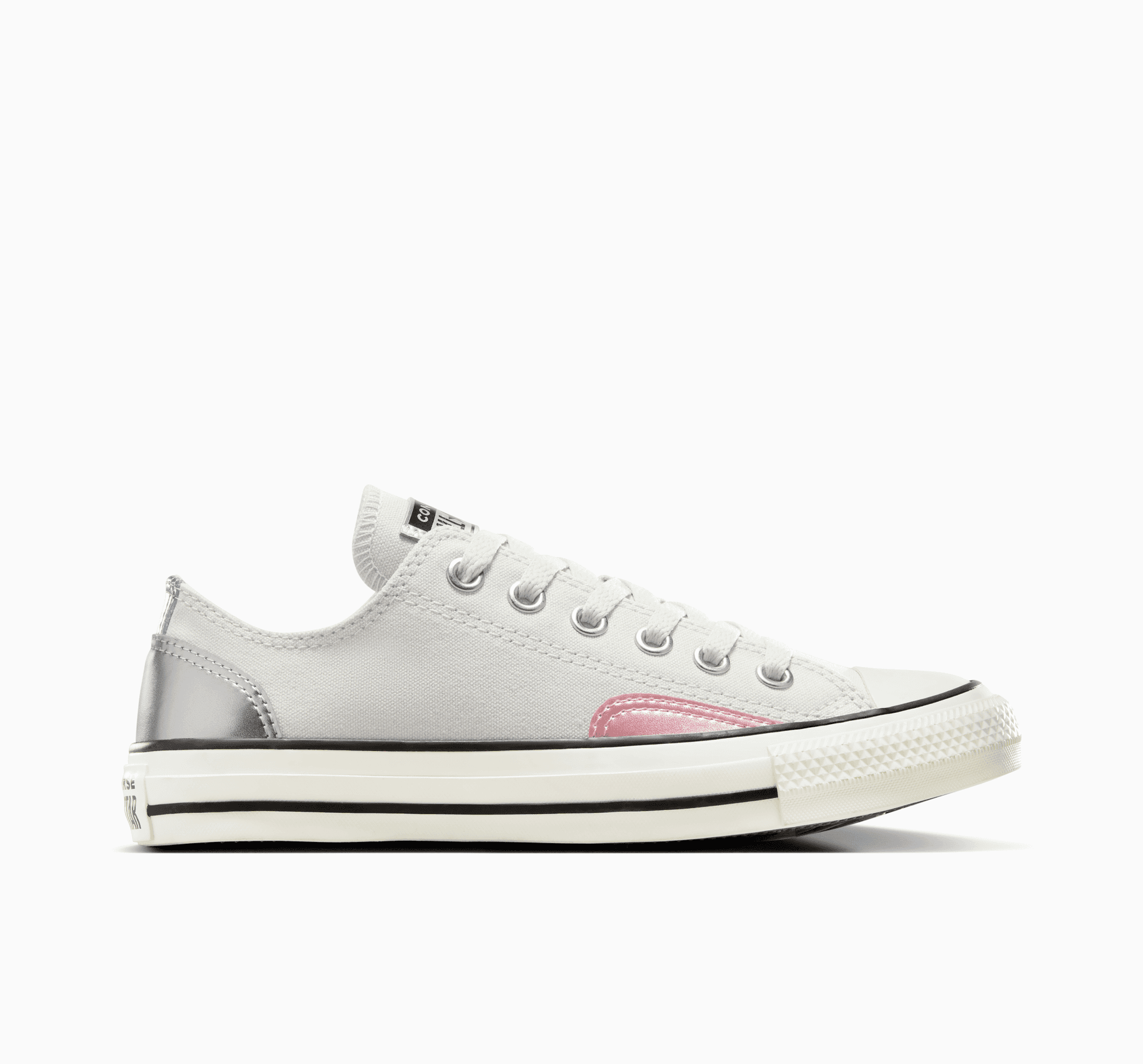 - Plátenný zvršok s metalickými prekrytiami z koženky a klasický štýl tenisiek Chuck