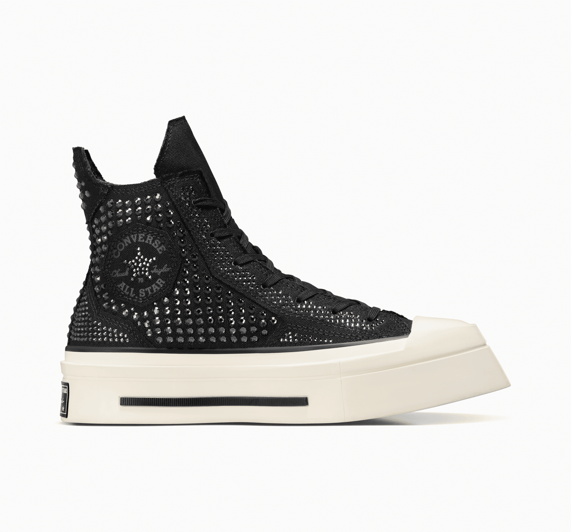 Predstavujeme luxusný model Converse De Luxe Squared s kryštálmi Swarovski®, odvážne hranaté vyjadrenie prémiových Converse Chuck 70 zdobené viac ako tisíckou kryštálov Swarovski®. Fazetové tvary hranatej špičky, očiek a ikonickej nášivky Chuck Taylor All Star dopĺňajú geometrické tvary kryštálov Swarovski®.