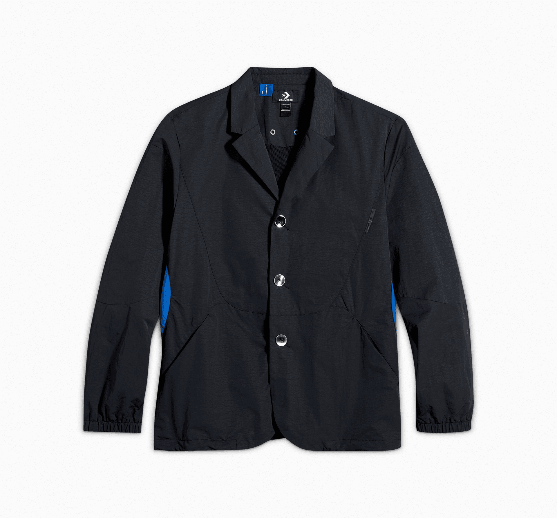 Nová kolekcia od Converse a ADERERROR predstavuje sako, ktoré spája funkčné prvky s uhladeným štýlom. Charakteristické prvky modrej farby ADERERROR sa spájajú s detailmi, ako je nášivka na jazyku topánky na golieri, obrátené záhyby a cikcakové prešívanie.