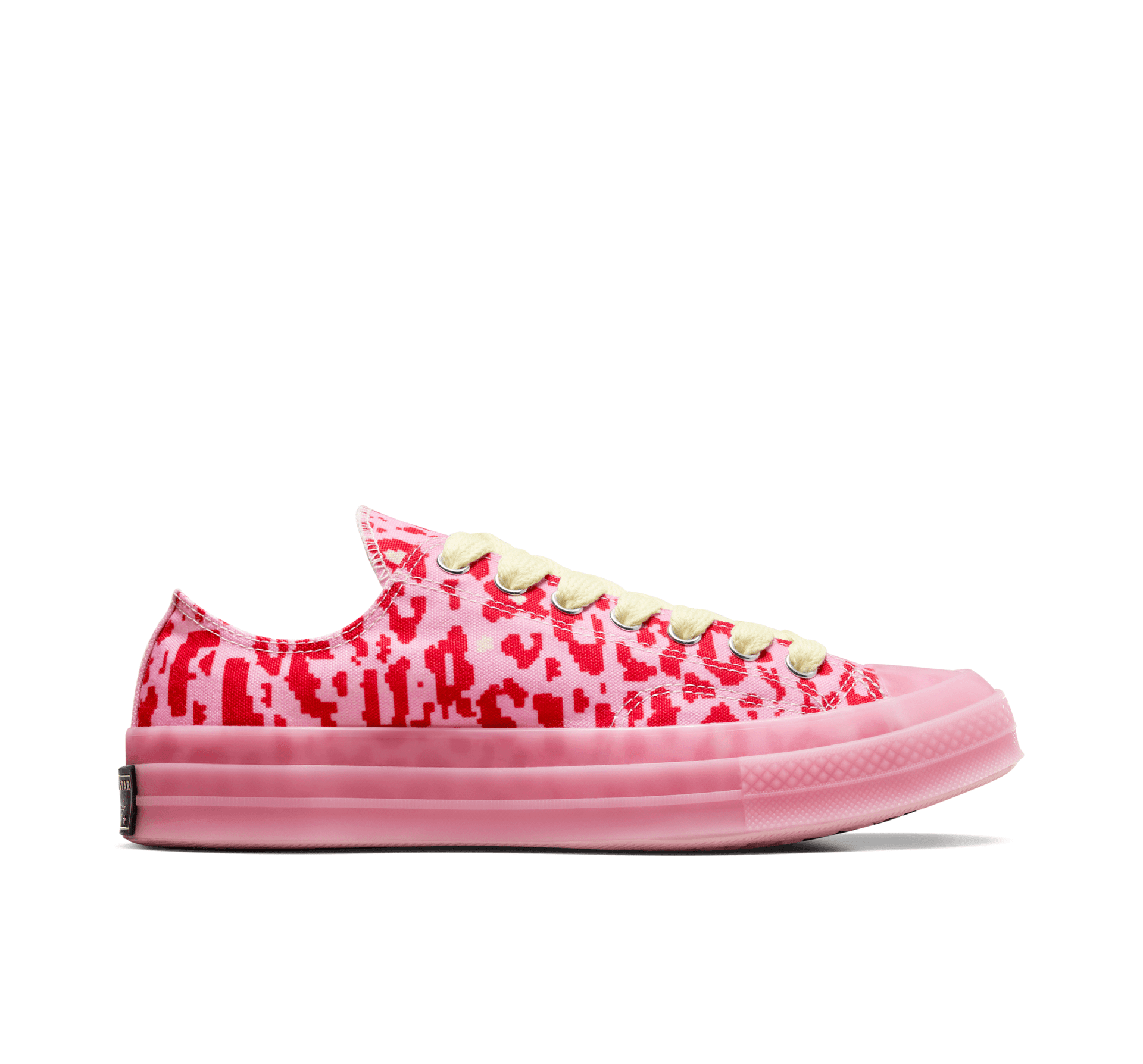 Tyler, The Creator prináša kamuflážnu celoplošnú potlač GOLF le FLEUR* na model Chuck 70 v štyroch žiarivých farbách a spája odvážny vzor na zvršku s vlastnými prvkami. Dizajn limitovanej edície badať aj na vložke v podobe nápisu GOLF le FLEUR* i na detailoch podrážky vrátane grafiky „poslíčka“. GOLF le FLEUR* Camo Chuck 70: prvotriedne remeselné spracovanie našej fanúšikmi obľúbenej ikony v spojení s osobitým štýlom Tylera, The Creatora.