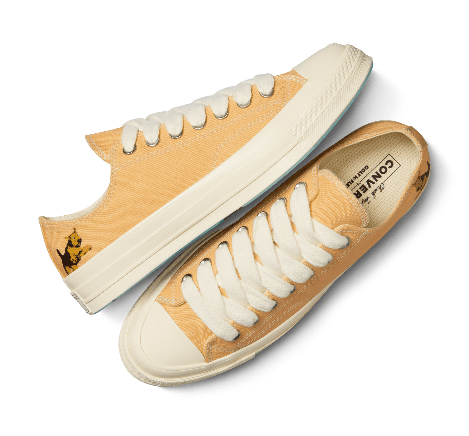 V našej najnovšej spolupráci s GOLF le FLEUR* maskot značky Darryl získava svoje vlastné Chuck 70. Minimalistický dizajn je dostupný v piatich farbách z charakteristickej palety GOLF le FLEUR*, každá s jemnou grafikou Darryla na zvršku a výraznou grafikou portiera na podrážke. Klasické. Nevšedné. Sofistikované. Predstavujeme Darryl Chuck 70 od Tylera, The Creatora a GOLF le FLEUR*.