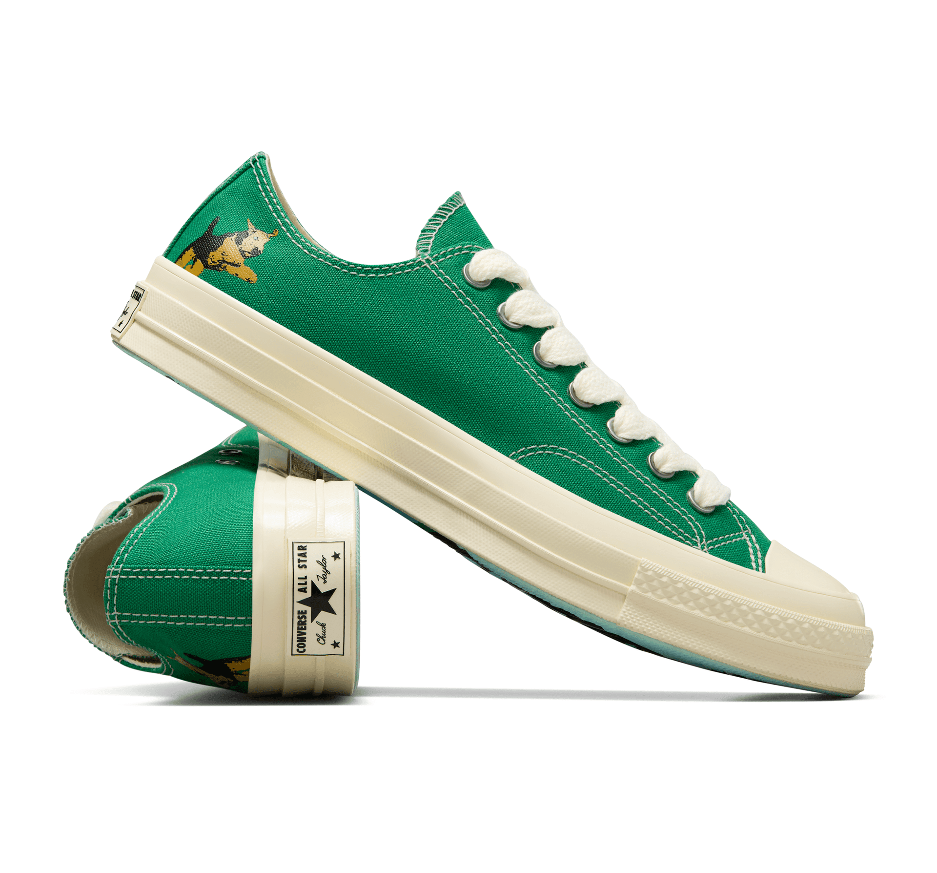 V našej najnovšej spolupráci s GOLF le FLEUR* maskot značky Darryl získava svoje vlastné Chuck 70. Minimalistický dizajn je dostupný v piatich farbách z charakteristickej palety GOLF le FLEUR*, každá s jemnou grafikou Darryla na zvršku a výraznou grafikou portiera na podrážke. Klasické. Nevšedné. Sofistikované. Predstavujeme Darryl Chuck 70 od Tylera, The Creatora a GOLF le FLEUR*.