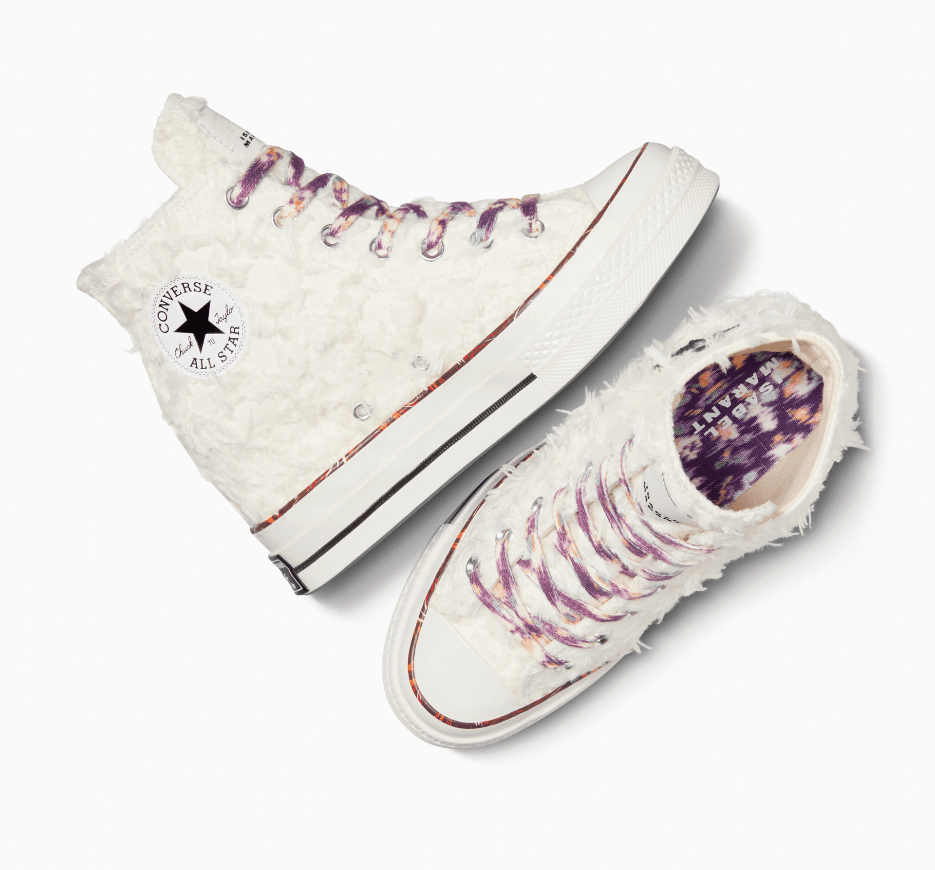 Francúzska módna návrhárka vnáša jej slávny koncept klinových tenisiek do prémiových Chuck 70, čím dodáva ikonickej siluete jedinečný zvýšený postoj. Dizajn limitovanej edície, ktorý spája jednoduché prvky luxusného štýlu s klasickými detailmi Converse, zachytáva podstatu uvoľnenej, ale vznešenej estetiky Isabel Marant. Sofistikované materiály, nespracované detaily a živé víry farieb vytvárajú osobitú bezstarostnú atmosféru.