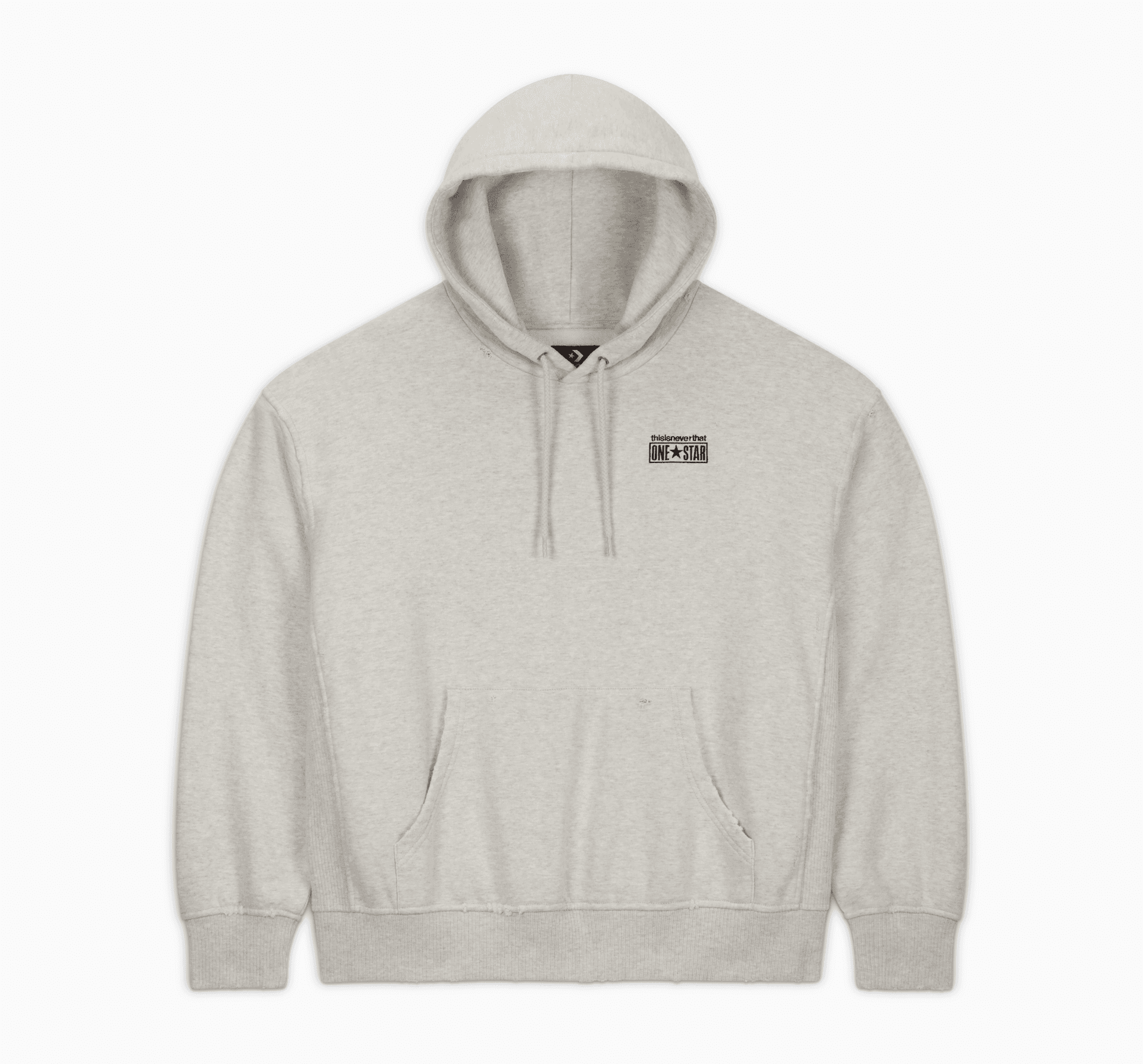 - Logá thisisneverthat a Converse One Star vyšité na ľavej strane hrudi