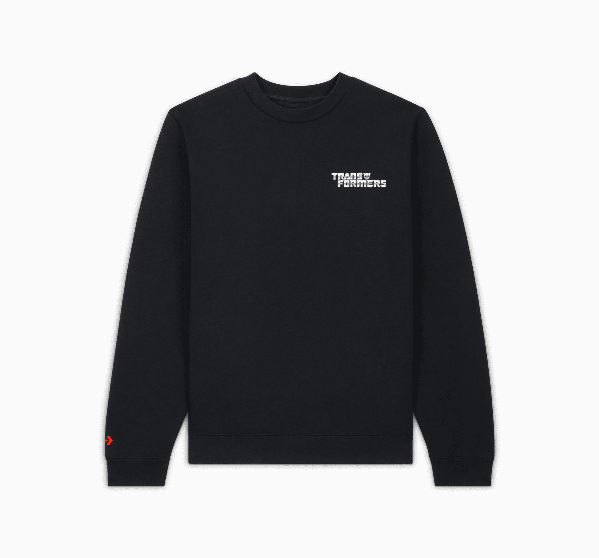 Svet hrdinských Autobotov a zlých Deceptikonov sa dostáva do novej kolekcie Converse, vrátane tejto limitovanej edície fleecovej mikiny s Bumblebeem a Optimusom Primom na chrbte s gumovou potlačou a špeciálnym spoločným logom vpredu.