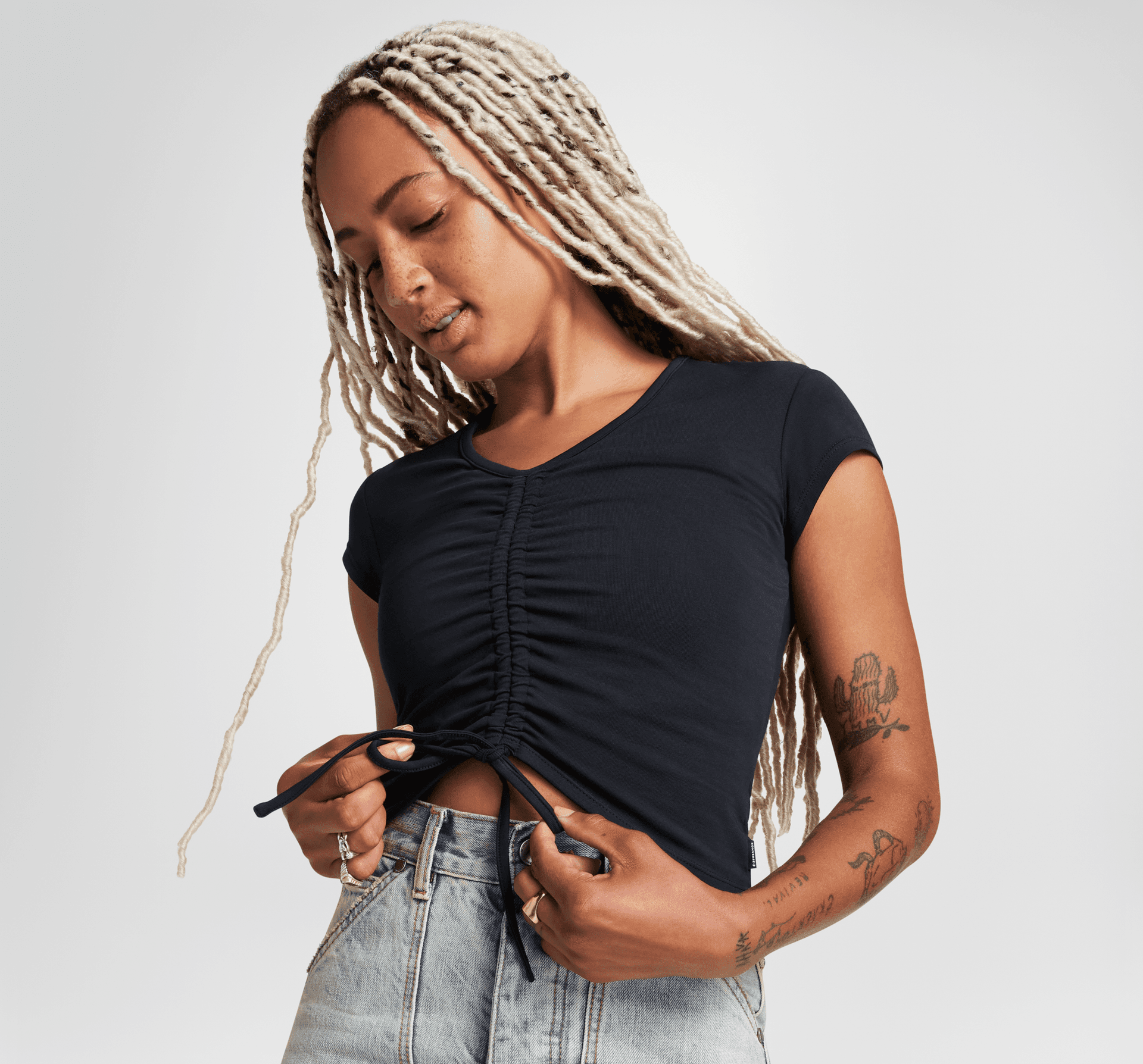 Pohodlný ako tričko a štýl skvelý na Instagrame. Sťahovacou šnúrkou riasený top si môžete prispôsobiť tak, aby zodpovedal každej vašej nálade.