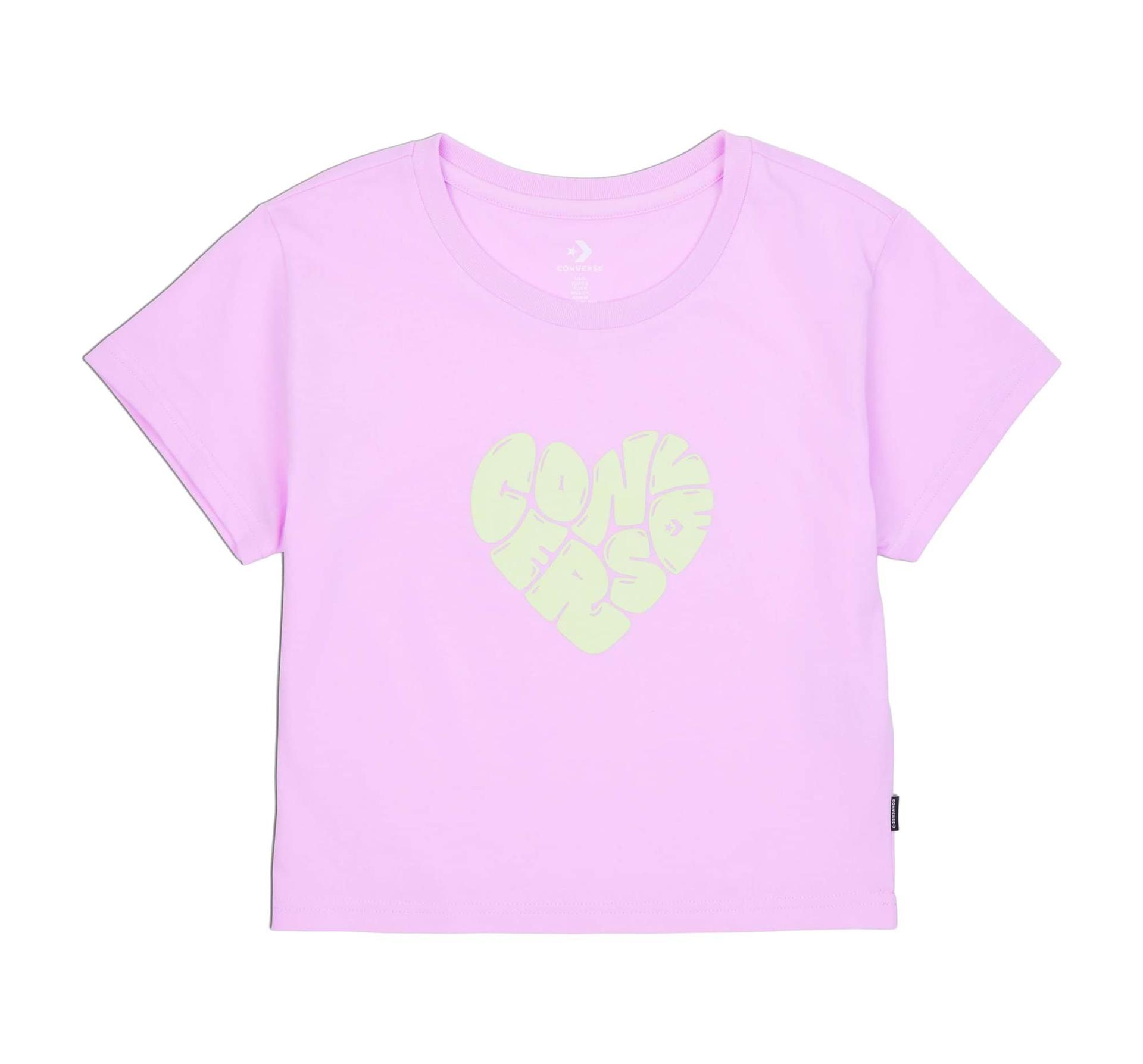 Bublinkové písmenká v tvare srdca v hravej potlači s logom Converse.