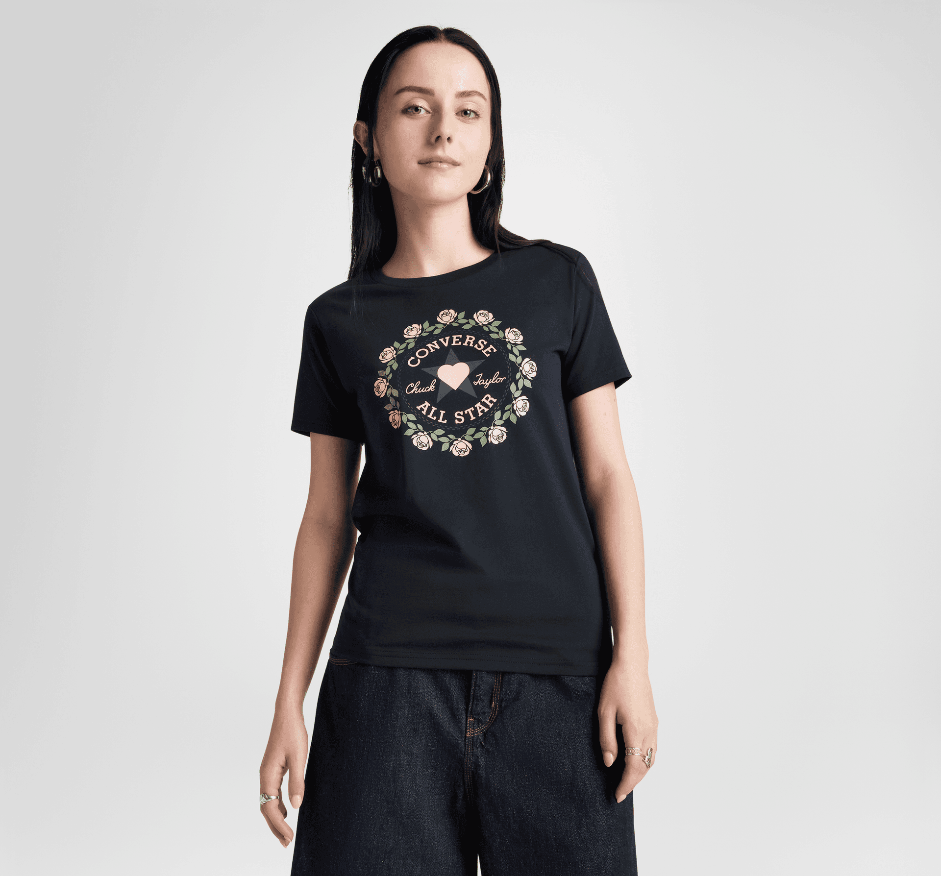 Romantická potlač nášivky Chuck Taylor s ružami a srdiečkami