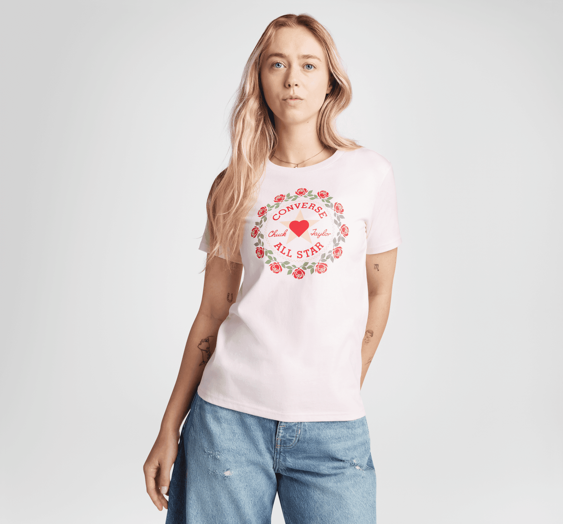 Romantická potlač nášivky Chuck Taylor s ružami a srdiečkami
