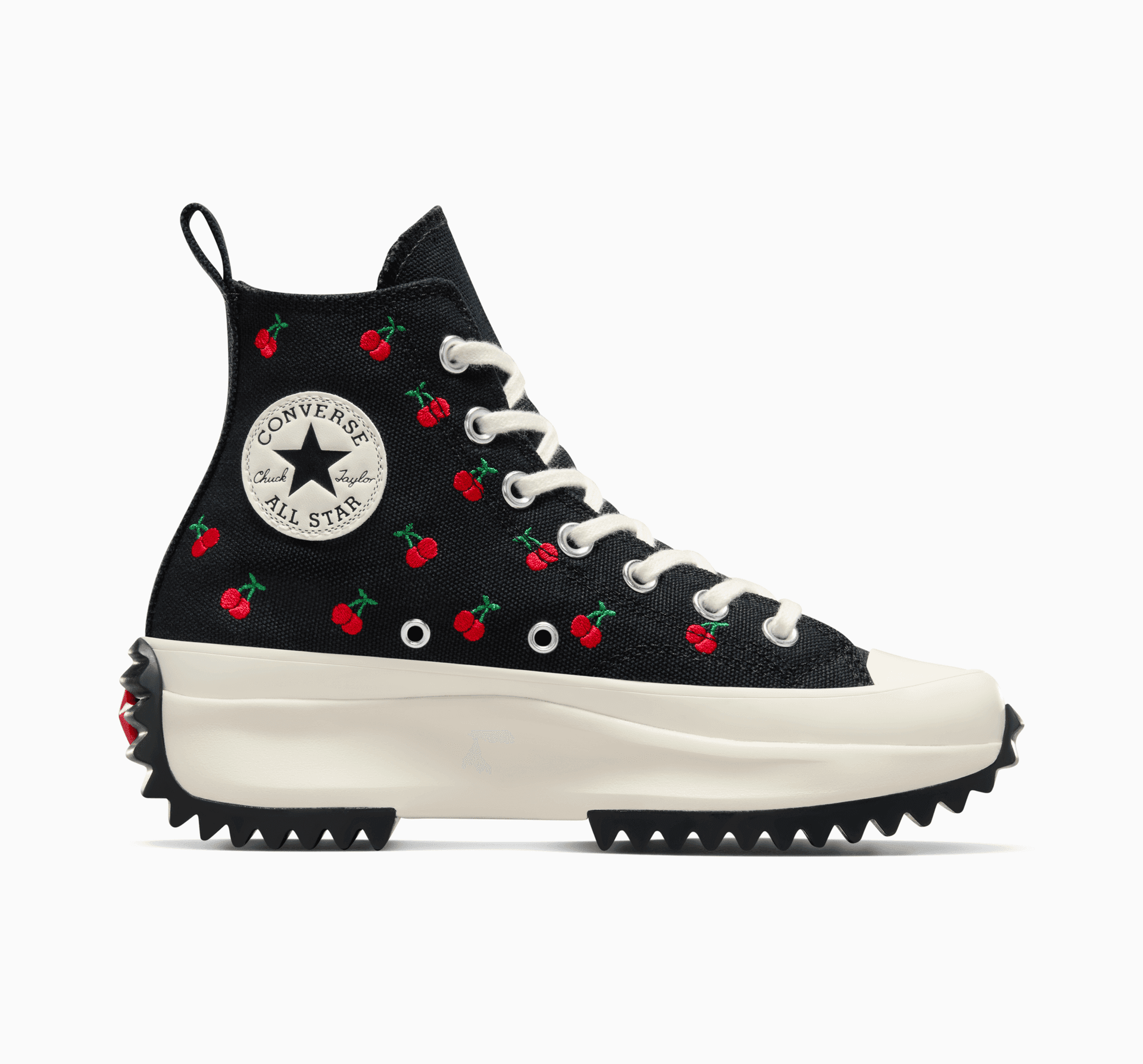 Jarné platformy, ktoré prinesú do vášho štýlu jarnú sviežosť. Vyšívané čerešne po celom zvršku a kockované pruhy sú oslavou sezóny a podrážka s pílovým vzorom urobí z každého outfitu nezabudnuteľný. Dozrejú na slnku, stvorené v tieni.
