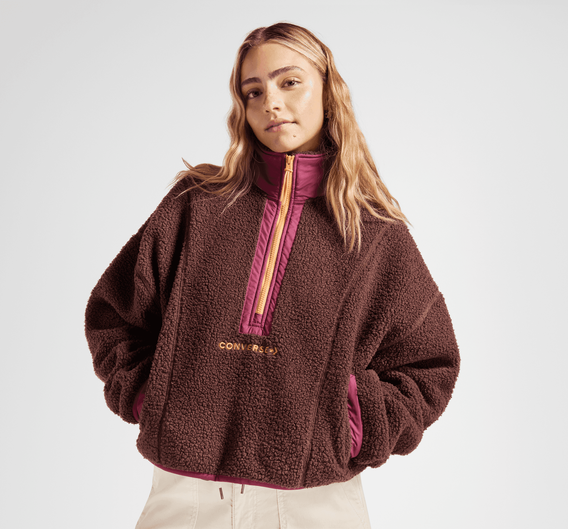 Ušitý tak, aby zahrial, vonku aj na pohovke. Top so zipsom v hrudnej časti a kožušinou sherpa vás zahreje, či už ste v divočine alebo v pohodlí domova. Je tak štýlový ako vy sami. Tak si zapnite zips až ku krku a urobte dojem.