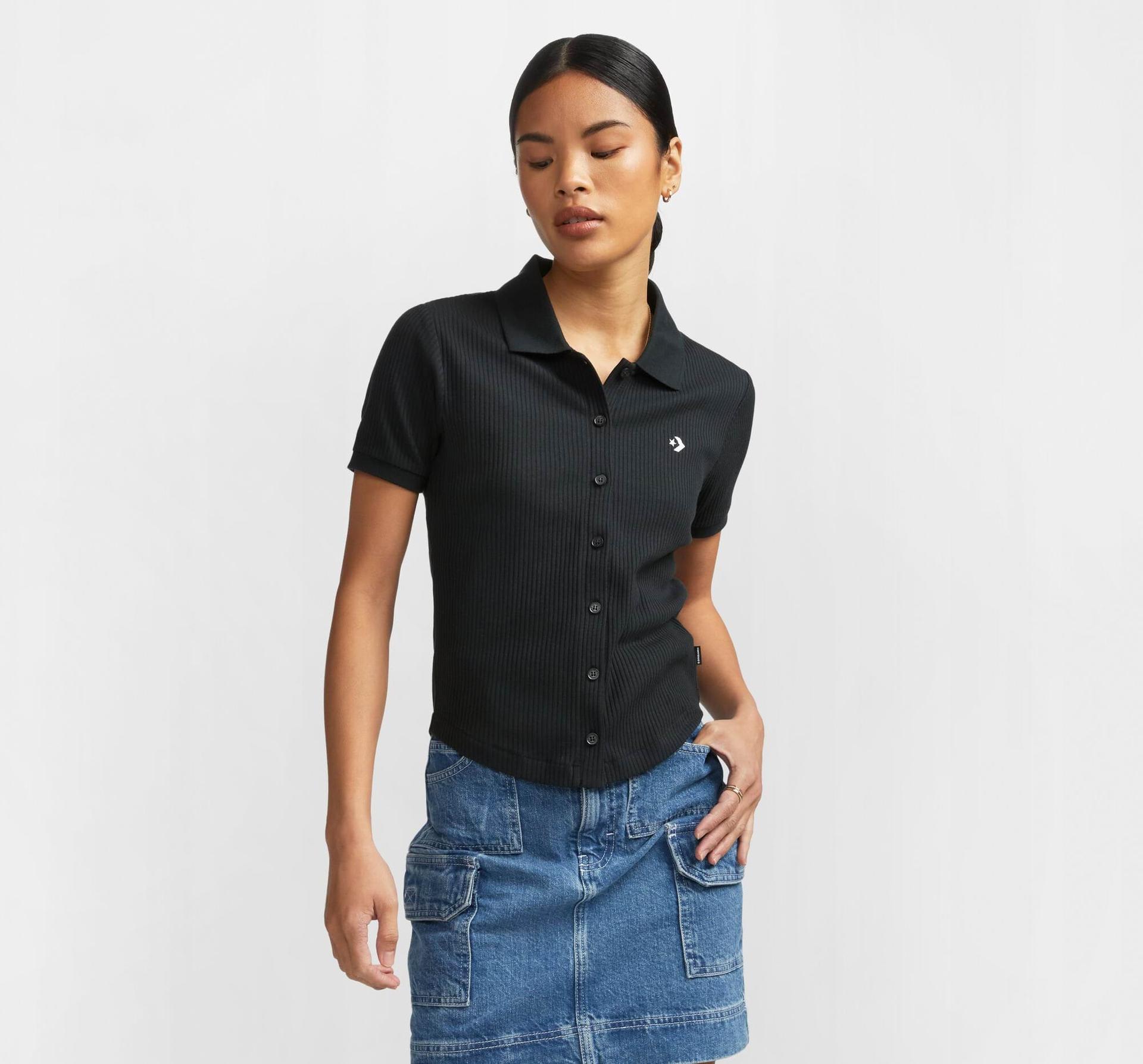 Nové obľúbené polo je navrhnuté tak, aby lichotilo postave a obopínalo ju. Úzky rebrovaný strih a zapínanie na gombíky robia z pola univerzálny kúsok, zatiaľ čo lem v tvare V pôsobí trendy a veľmi žensky. Vyšívané logo Star Chevron na hrudi