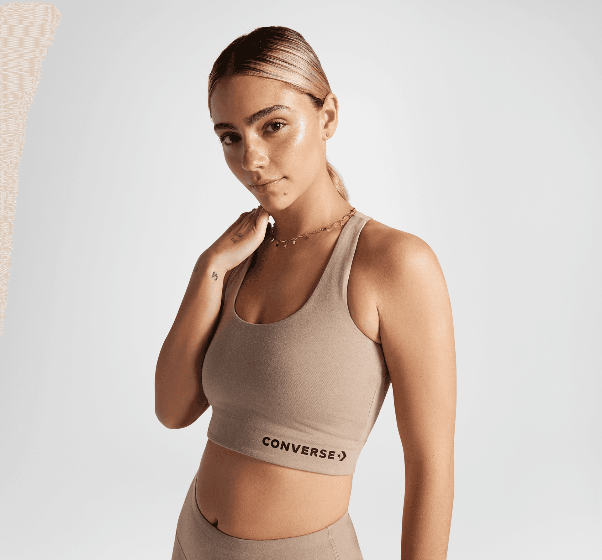 Tento podprsenkový top v štýle športovej podprsenky je nutnosťou, keď idete práve cvičiť alebo sa chcete váľať na gauči. Vykrojený výstrih a vykrojený chrbát sa postarajú o priedušné zahalenie, a ikonický nápis Converse vylepší každý štýl.