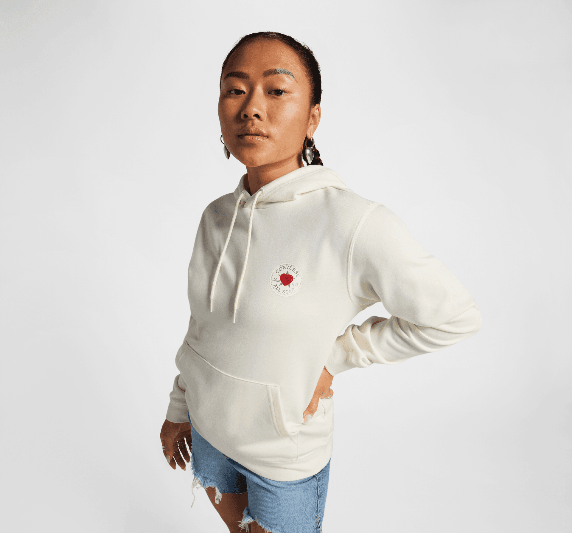Varovanie: Túto mikinu si asi zamilujete. Je vyrobená z mimoriadne príjemného materiálu a má trblietavú nášivku so srdiečkom Chuck Taylor. V podstate je to jedno veľké objatie, ktoré sa dá nosiť.